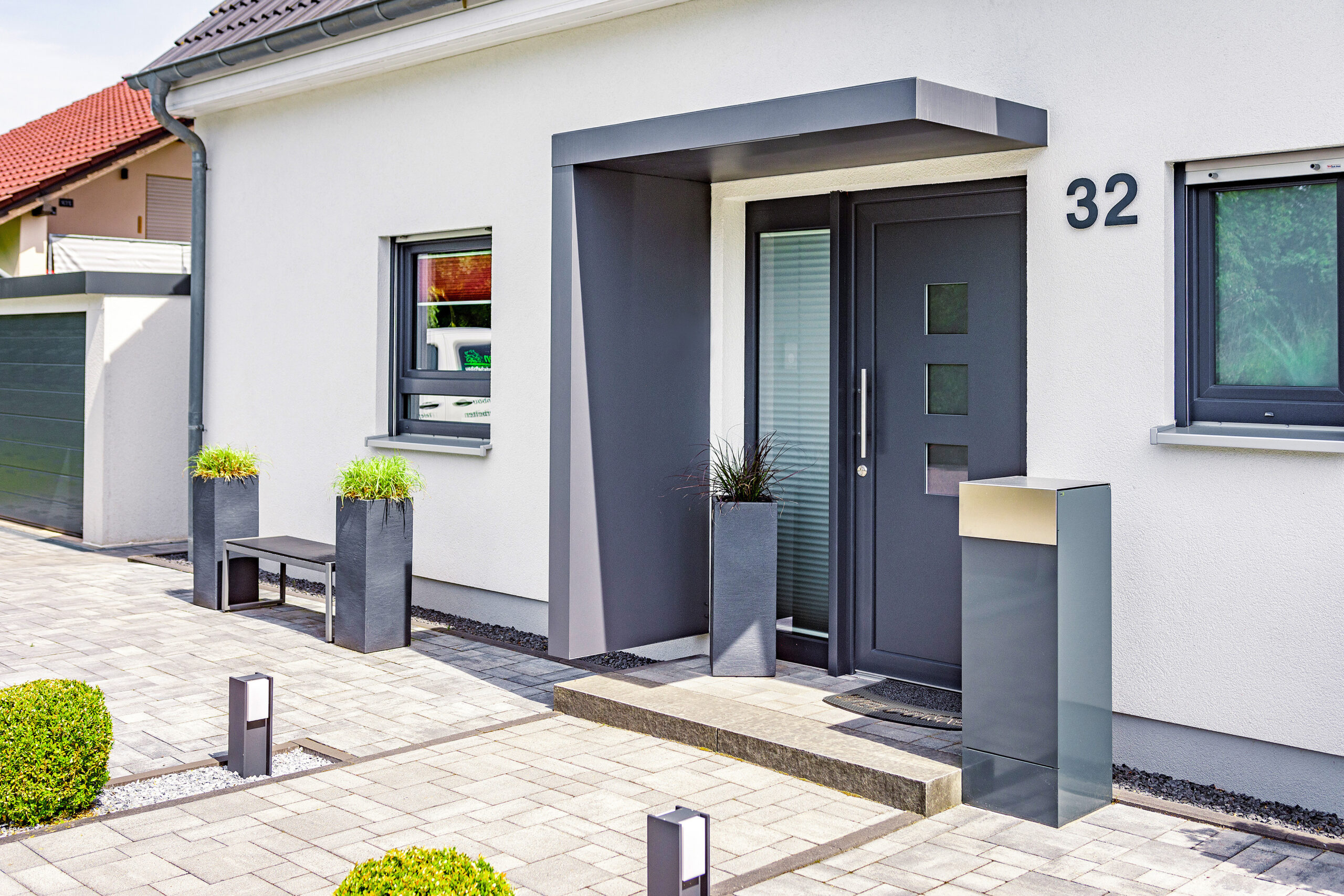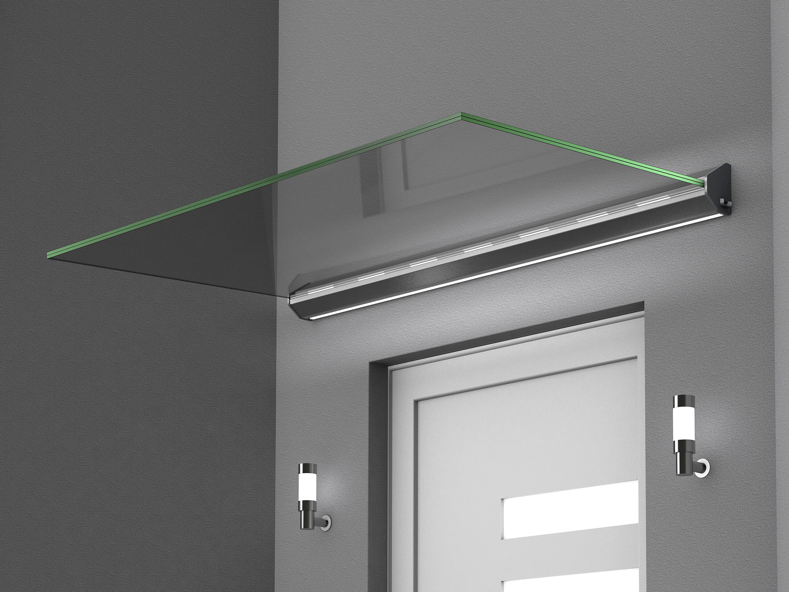 Daneben ist auch an funktionale Details gedacht: Die Wartungsfreiheit und Langlebigkeit der LED-Lichtbänder stellt ebenso einen Vorteil dar wie die wirksame Entwässerung, die direkt in den Wandhalter integriert ist. Eindringendes Regenwasser wird beidseitig abgeleitet, so dass Sie unter dem Dach garantiert trockenen Fußes stehen. Mit einer Breite von 160 cm werden Hauseingänge effektvoll beschirmt, die Tiefe beträgt 100 cm, die Wandhalter aus rostfreiem Aluminium haben eine Höhe von 13,5 Zentimetern.