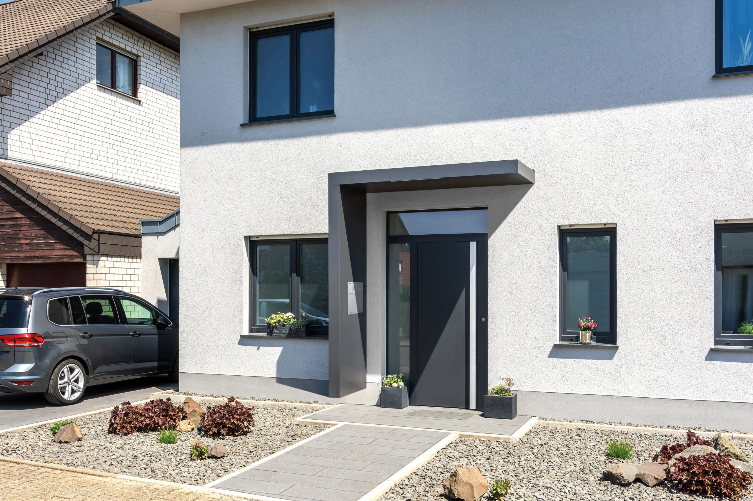 Für noch mehr Gestaltungsspielraum bietet das Modell BS Plus zusätzliche Erweiterungen: Wählen Sie beispielsweise eine Seitenblende, die mit einem Briefkastenelement ausgestattet ist – optional mit Klingel oder modernem Audio-/Videosystem. Auch Varianten mit schmalen Pfosten oder Kombinationen mit Seiten- und Frontpfosten sind möglich und sorgen für ein harmonisches Gesamtbild.
