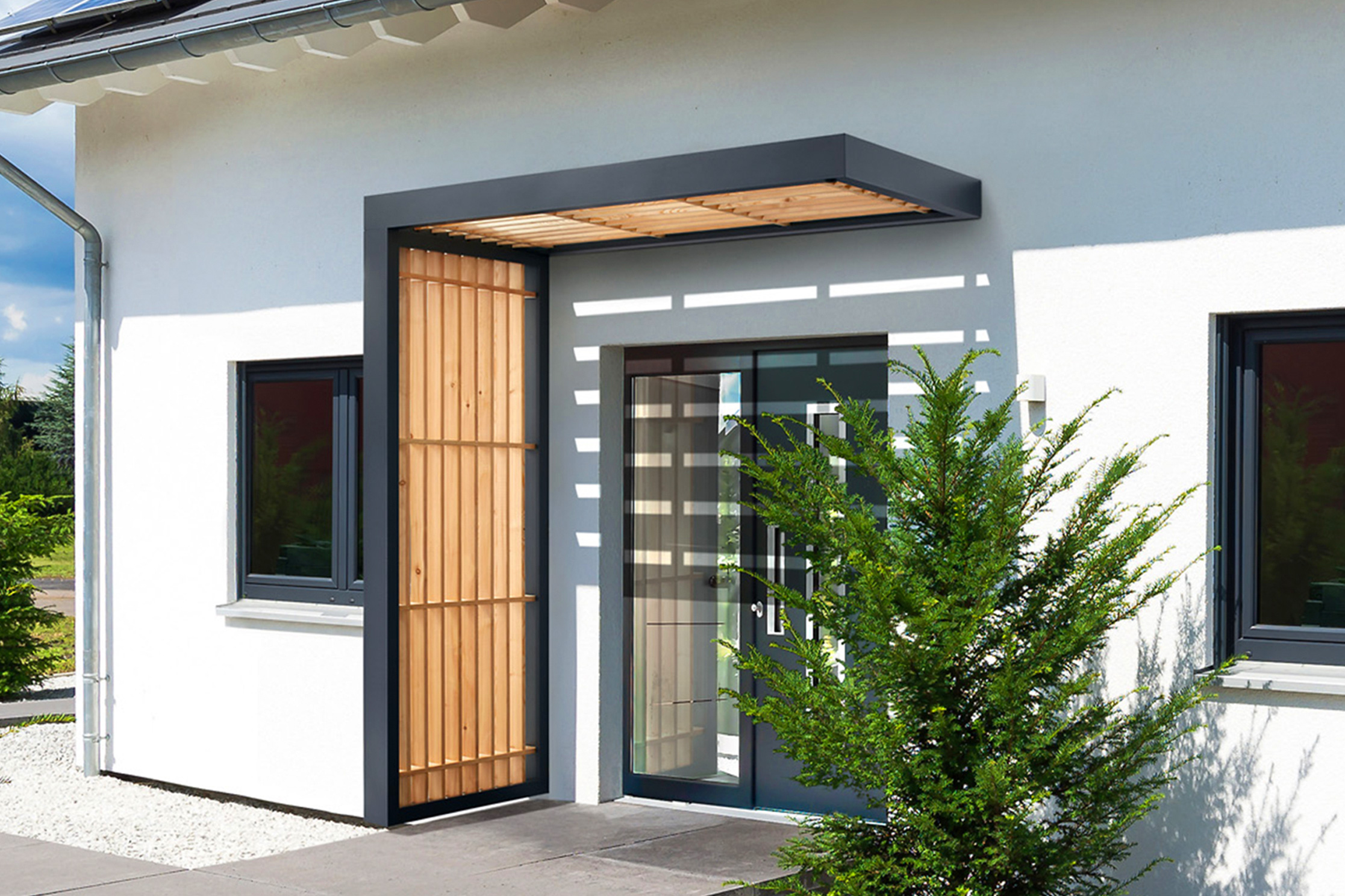 Für ein stilvolles Entree: Haustürvordach BS Timber-Line