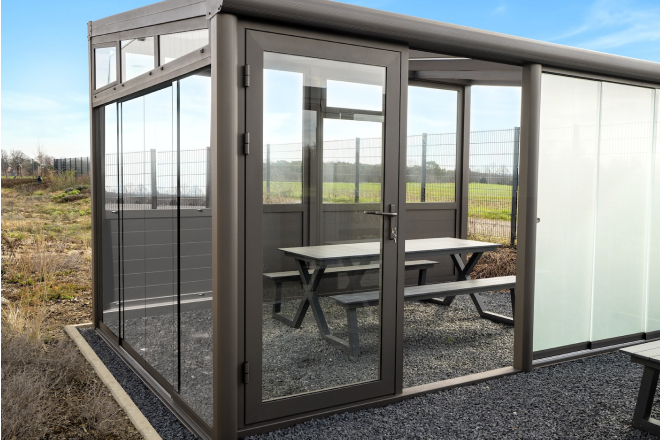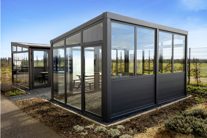 Zudem sind unsere Festelemente durch den Einsatz von Aluminium besonders witterungsbeständig, langlebig und eignen sich somit ideal für die Außenarchitektur.