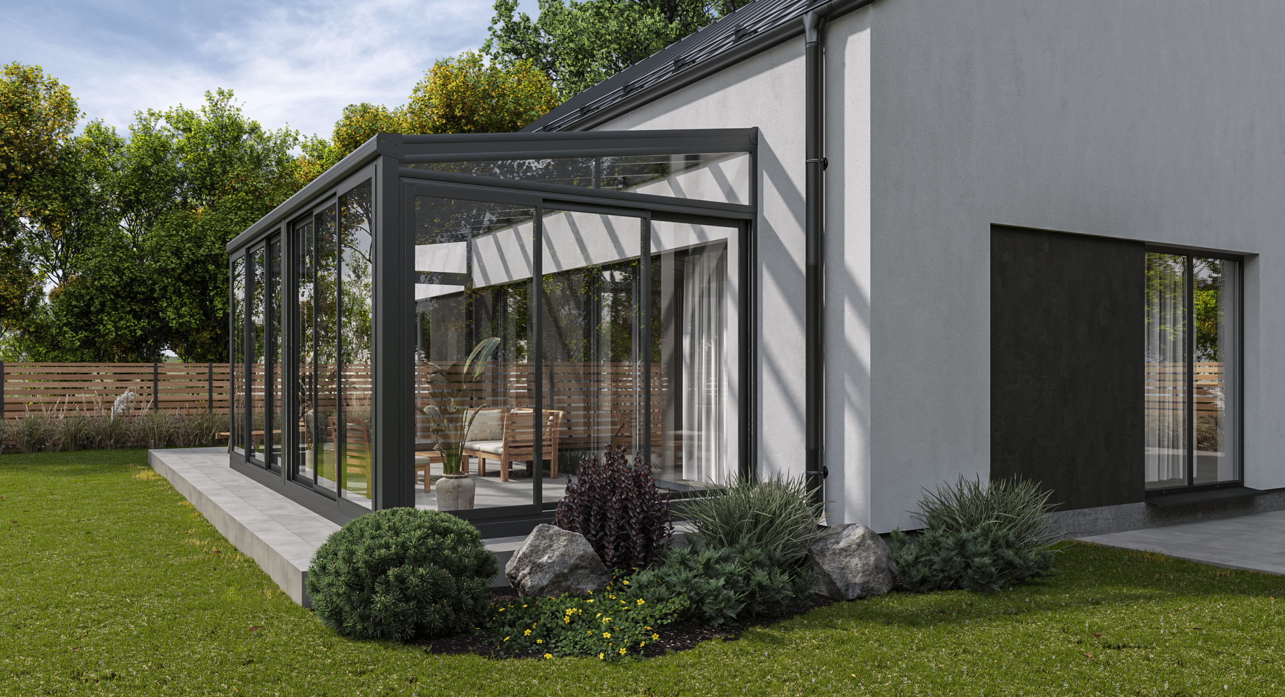 Unsere robusten Rahmenprofile aus Aluminium für Kaltwintergärten geben den Glastüren den nötigen Halt und bieten unseren Kunden vielseitige Gestaltungsmöglichkeiten. Durch den Einsatz von Verbundsicherheitsglas (VSG) wird das Bruchrisiko gemindert. Gleichzeitig wird die Wärmedämmung und der Schallschutz erhöht.
