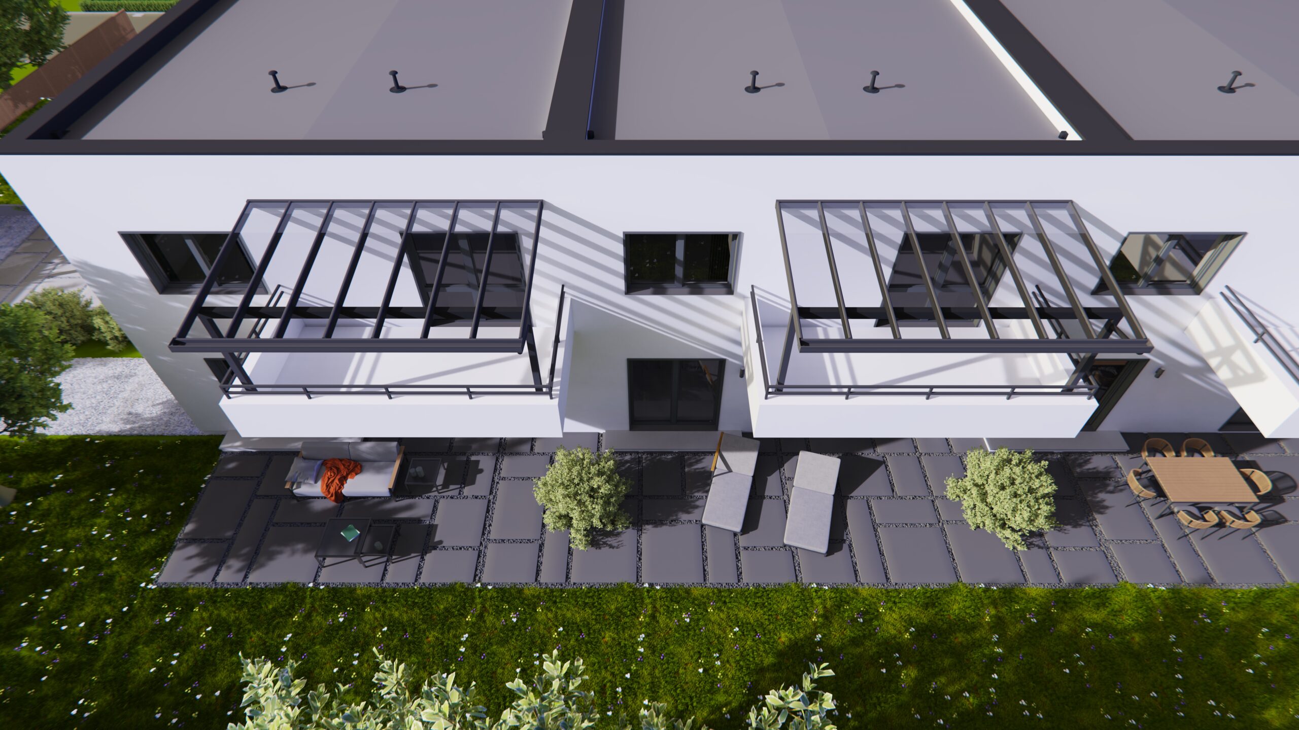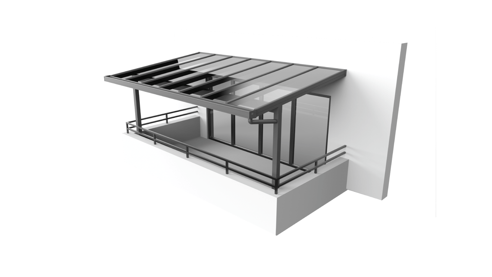Eine Balkonüberdachung mit Überstand, die für optimalen Schutz vor Regen sorgt und gleichzeitig einen modernen, offenen Look bewahrt, ideal für zusätzlichen Komfort im Außenbereich.