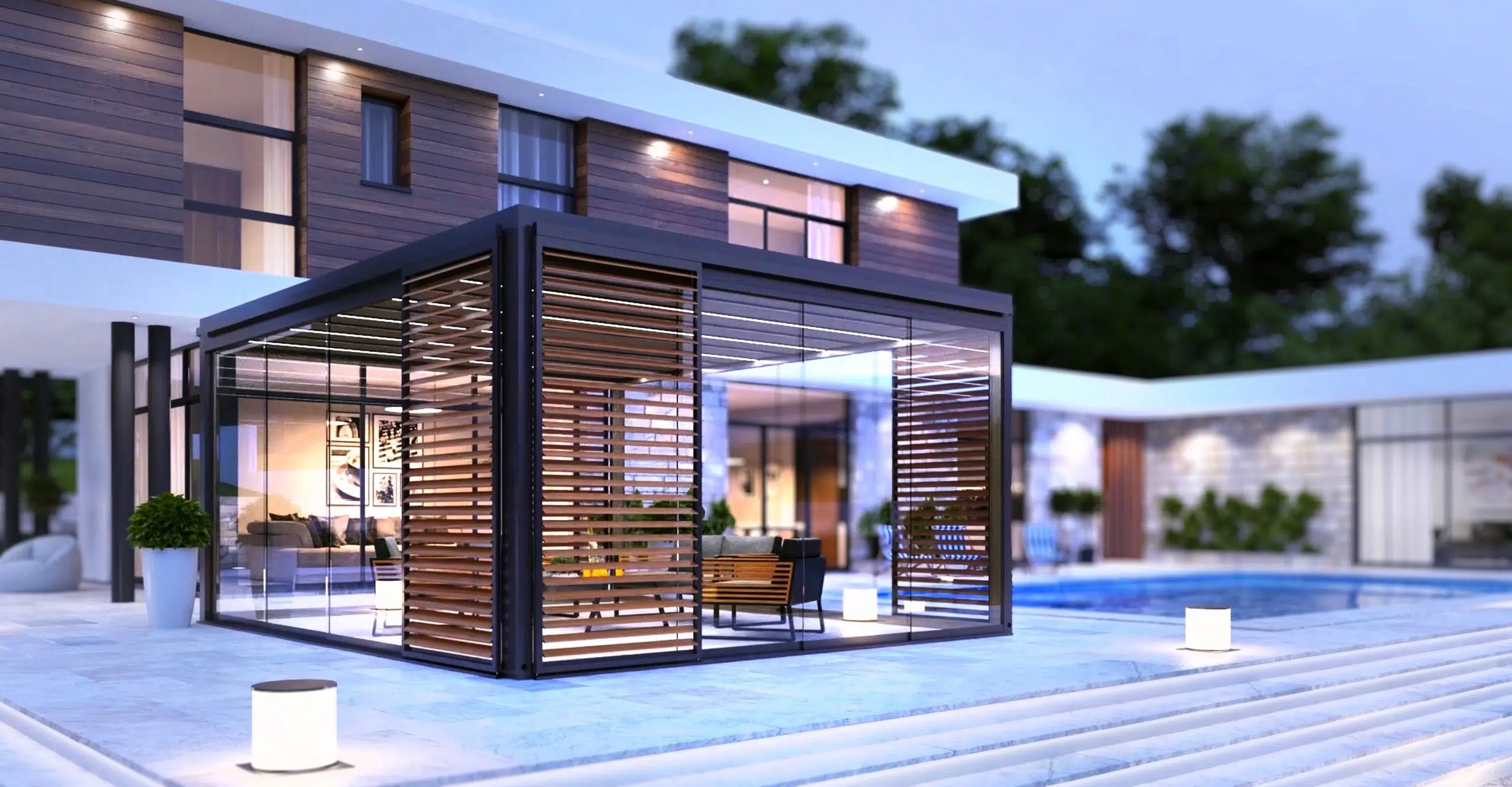 Der steuerbare Lamellenmechanismus ermöglicht, Licht und Schatten präzise anzupassen und den Außenbereich optimal auf Wetterbedingungen auszurichten.