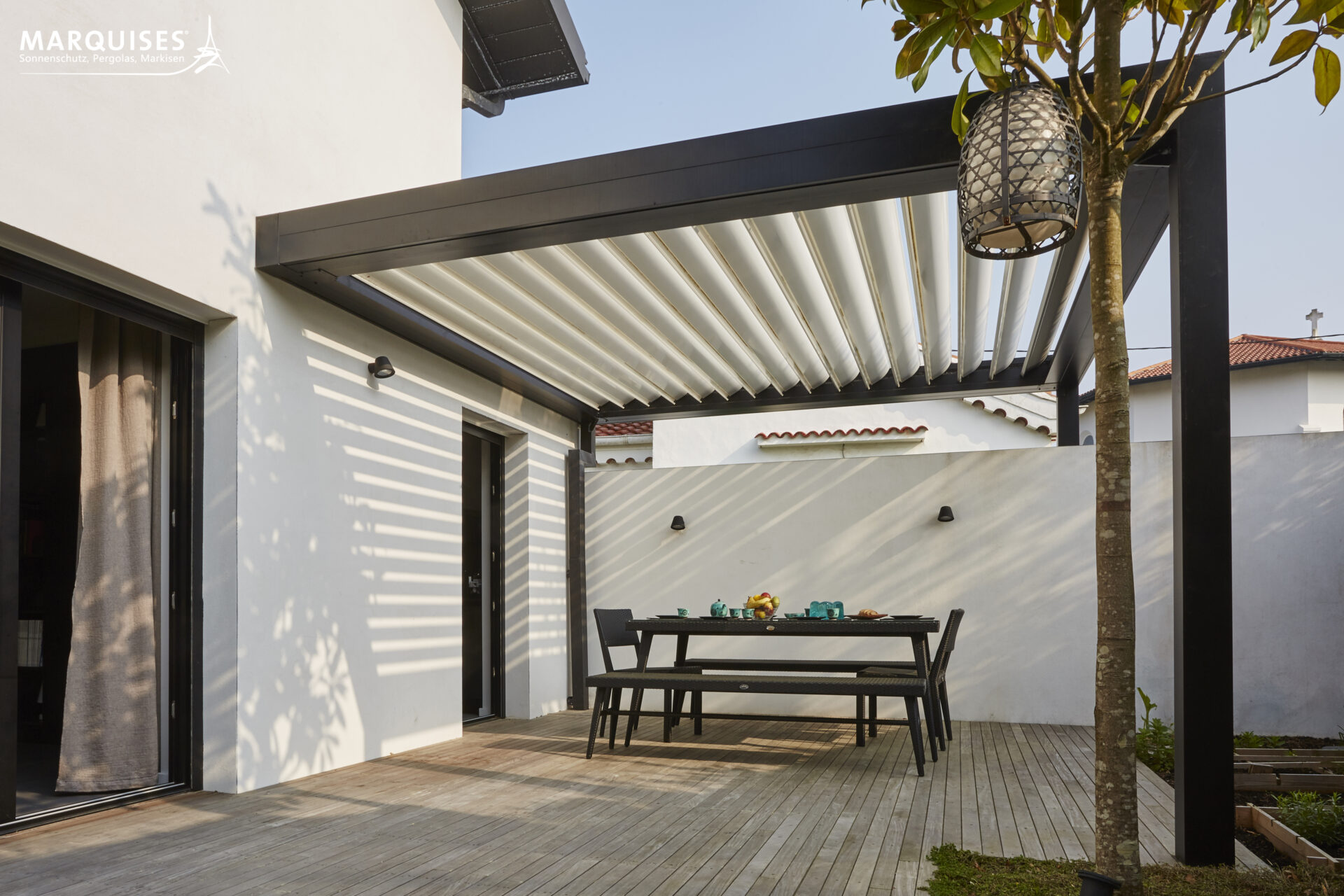 Der steuerbare Lamellenmechanismus ermöglicht, Licht und Schatten präzise anzupassen und den Außenbereich optimal auf Wetterbedingungen auszurichten.