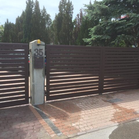 Ein System, das aus einem vollständigen Stahlprofil besteht und zur Verstärkung mit XPS-Styrodur gefüllt wird. Der Zaun zeichnet sich durch breite Lamellen (20-28cm) aus, Die geringen Abstände von +/- 30 40mm gewährleisten ein Gefühl der Diskretion und die Möglichkeit des visuellen Kontakts zur Umgebung. Die Dicke der Lamellen beträgt +/- 2 cm.