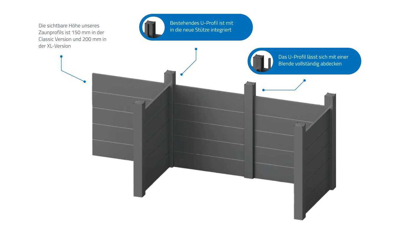 Das Classic Aluminium System bietet hochwertige Aluminium-Zaunelemente mit klarer Linienführung, langlebiger Oberfläche und besonders einfacher Montage. Durch das durchdachte Stecksystem lassen sich die Elemente flexibel und passgenau einsetzen – selbst bei Ecklösungen oder anspruchsvollen Grundstücksverläufen.